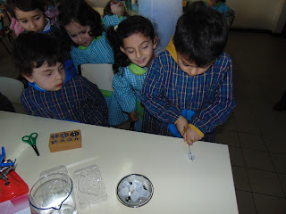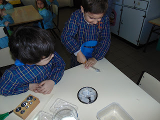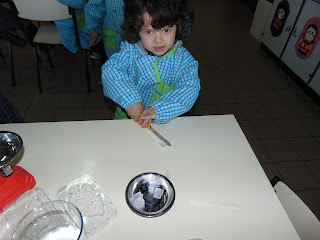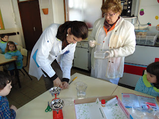Por momentos as nossas crianças transformaram-se em verdadeiros cientistas... realizaram várias experiencias com a ajuda das respetivas Educadoras.