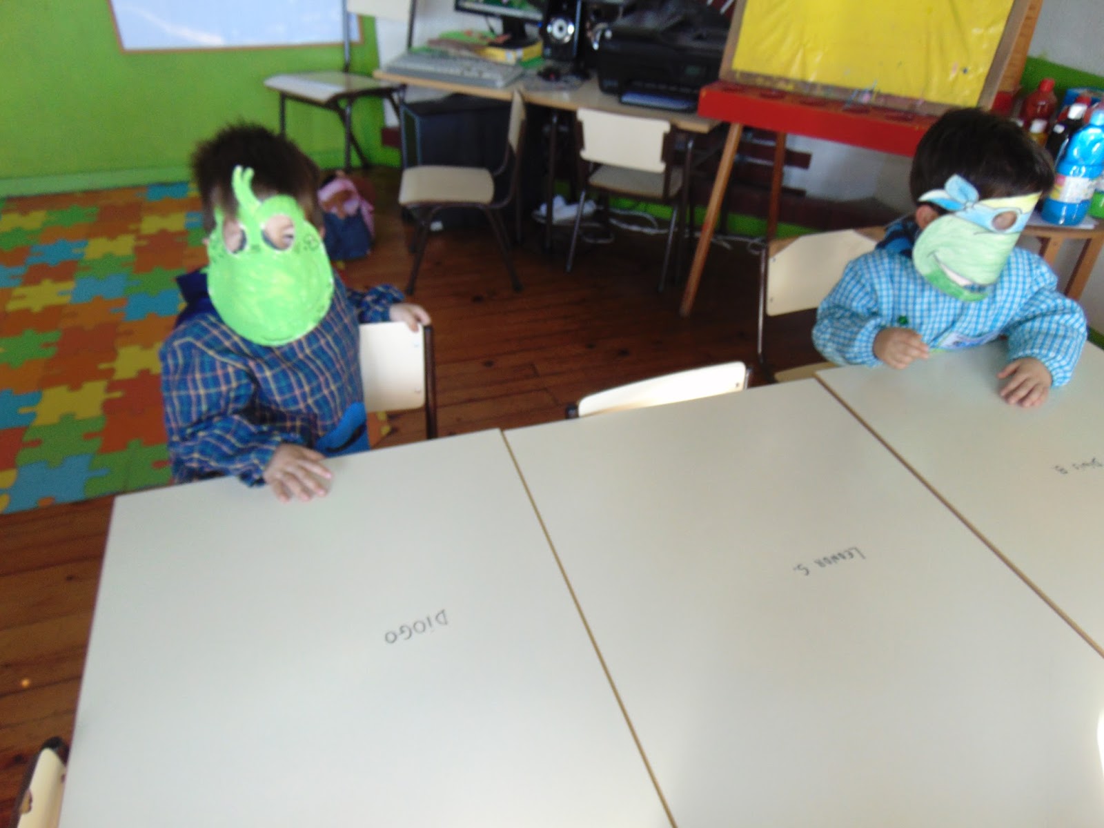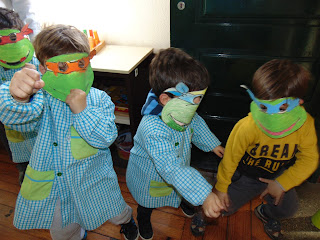 Como em todas as escolas do país, no dia 5 de Fevereiro, festejou-se o Carnaval... e no nosso Jardim de Infância não foi exceção. Participamos no desfile pelas ruas de Vila das Aves junto das outras escolas com enorme alegria e vestidos a preceito. A festa continuou durante todo o dia na escolinha... vejam bem os nossos "caretos"...